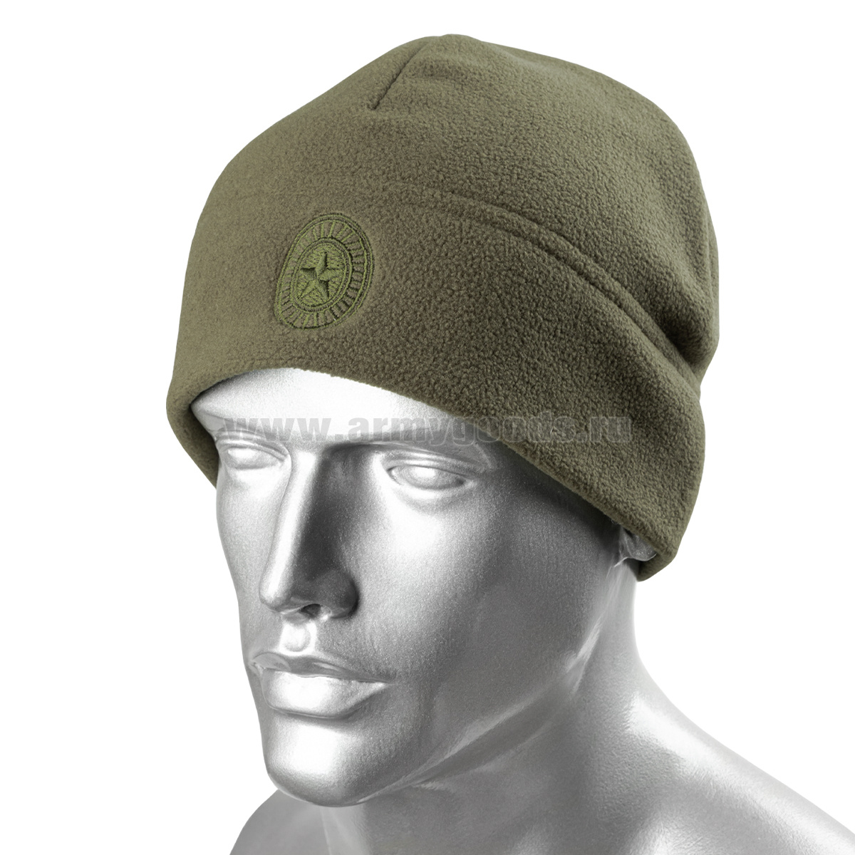 Шапка флисовая ВКБО оливковая с вышит. кокардой ("эконом")