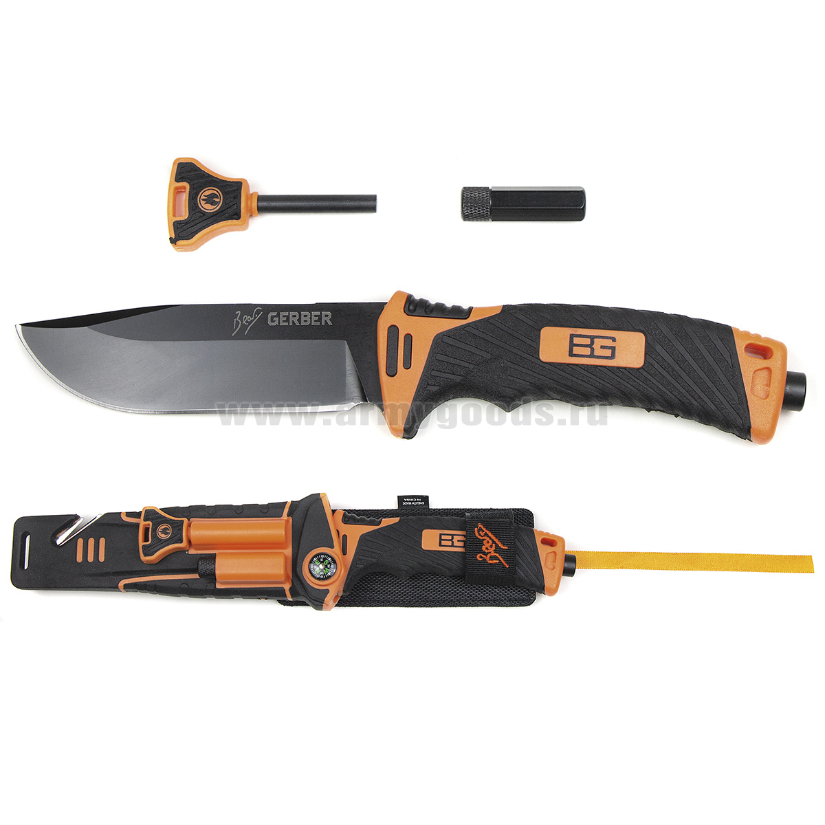 Нож GERBER в пластиковых ножнах с компасом, огнивом и мал. фонариком (BG-B5) общая длина 24,5 см