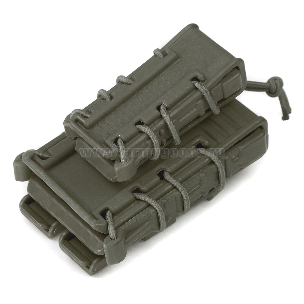 Подсумок тактический под 2 магазина: АК + Пистолет Ярыгина (ПЯ) ударопрочный полиамид с резинками (оливковый)