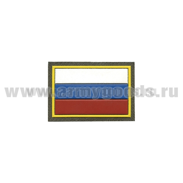 Шеврон пласт Флаг РФ (40x60 мм) (кант желтый) оливковый фон