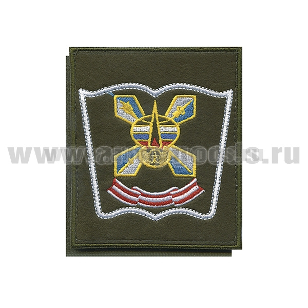 Шеврон вышит. ВКА им. А.Ф. Можайского нов/обр (книжка) оливк. фон, белый кант (на липучке) приказ № 300 от 22.06.2015