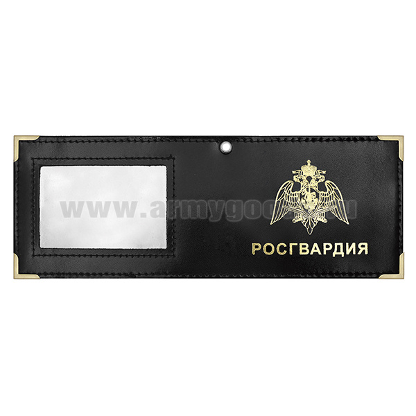 Обложка кожаная под удост. с мет. уголками и отв. д/цеп. на сгибе Росгвардия окно (цвет по наличию на складе)