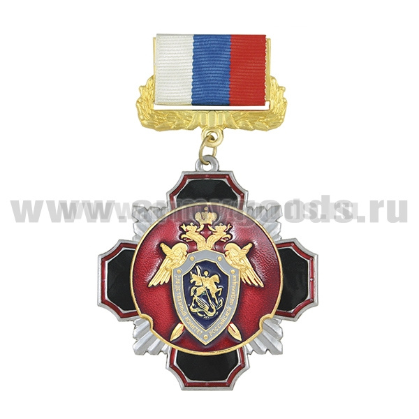Медаль Стальной черн. крест с красн. кантом Следственный комитет РФ (на планке - лента РФ)