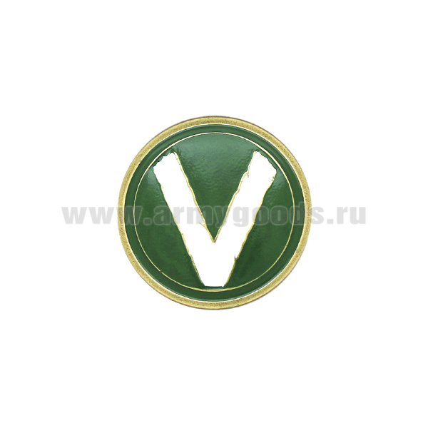 Значок мет. V (кругл, на пимсе) d=25 мм (зел. фон)