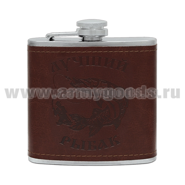 -Фляга (нерж. сталь) с тиснением на коже Лучший рыбак (6 oz (180 мл)