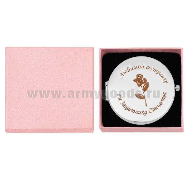 Зеркало карманное с лазерной гравировкой Любимой сестренке от Защитника Отечества