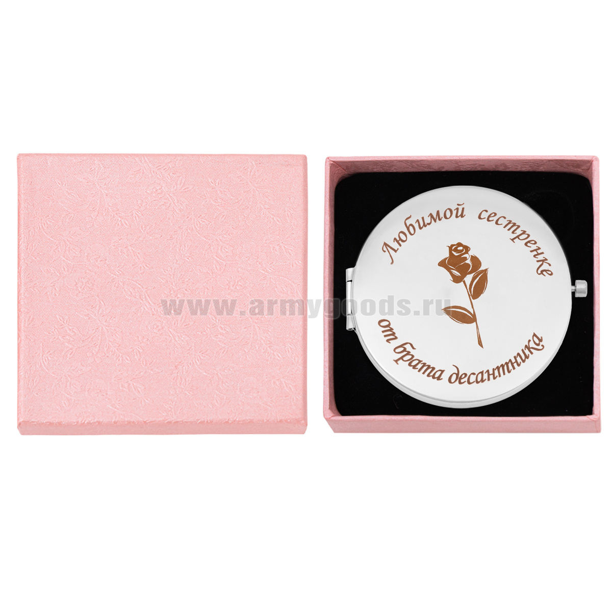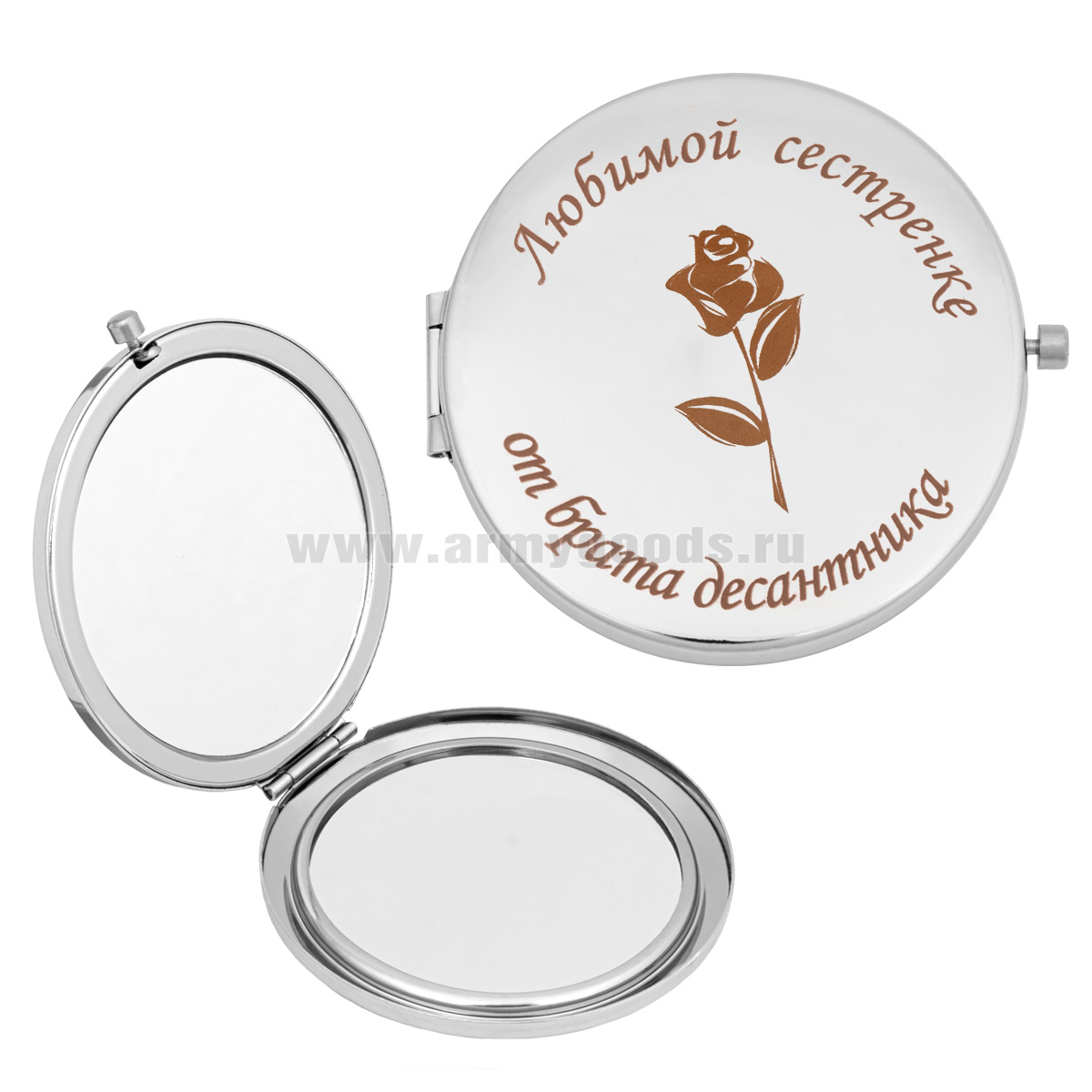 Зеркало карманное с лазерной гравировкой Любимой сестренке от брата десантника