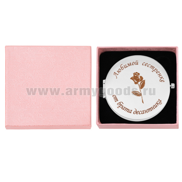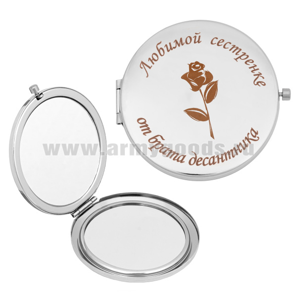 Зеркало карманное с лазерной гравировкой Любимой сестренке от брата десантника