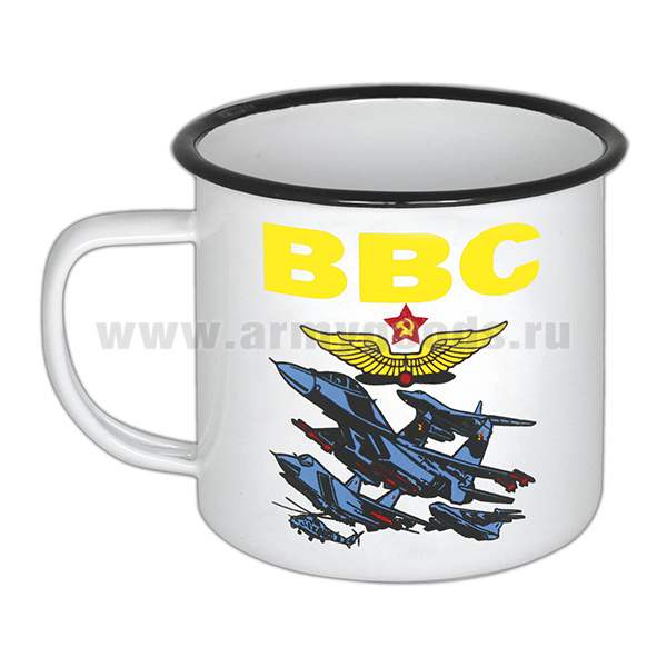 Кружка эмалированная 0,5 л с рис. (деколь) ВВС (истребители)