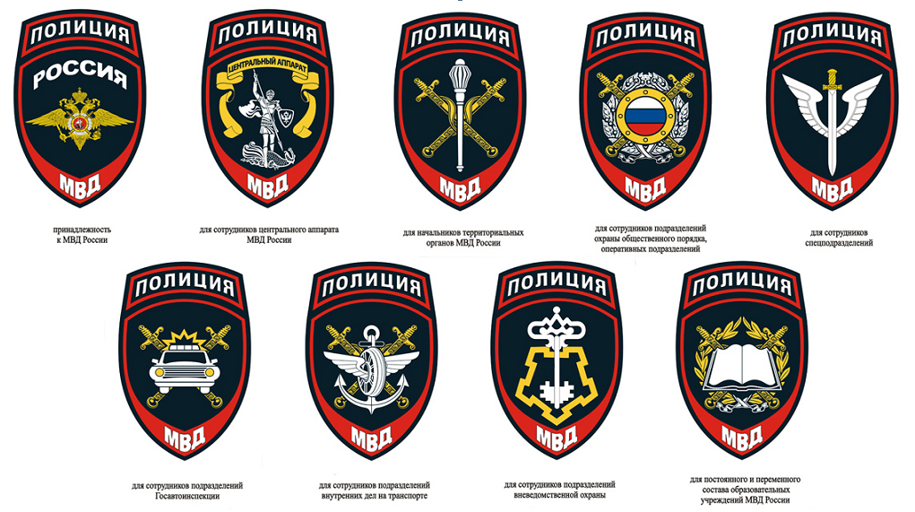 Сотрудники органов внутренних дел, имеющих специальные звания полиции, на предметах форменной одежды носят нашивки «полиция» Нашивки размещаются на спинке и левой полочке на куртках костюмов зимнего, демисезонного, летнего и ветровлагозащитного для всех сотрудников полиции (кроме подразделений госавтоинспекции).