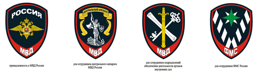 Нарукавный знак «Россия МВД» носится на предметах форменной одежды на внешней стороне левого рукава на расстоянии 80 мм от верхней точки притачивания рукава до знака.