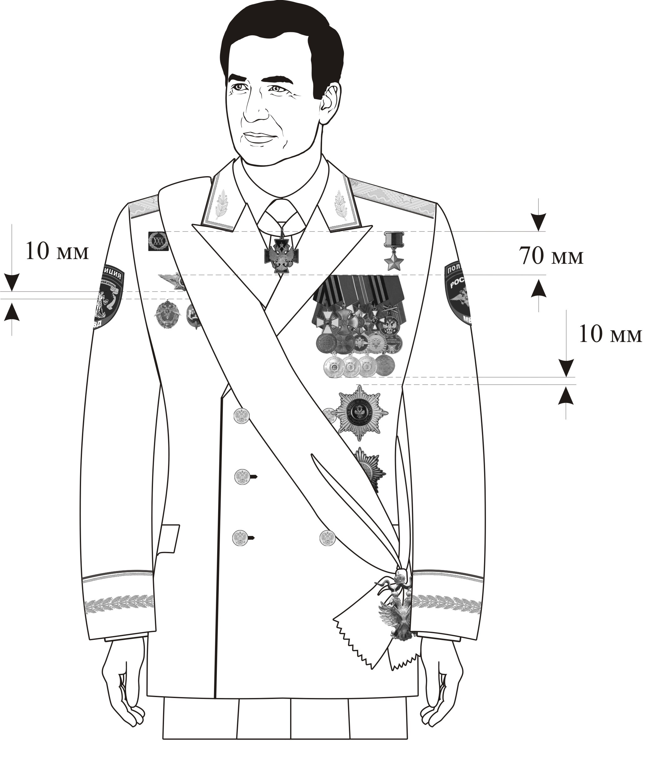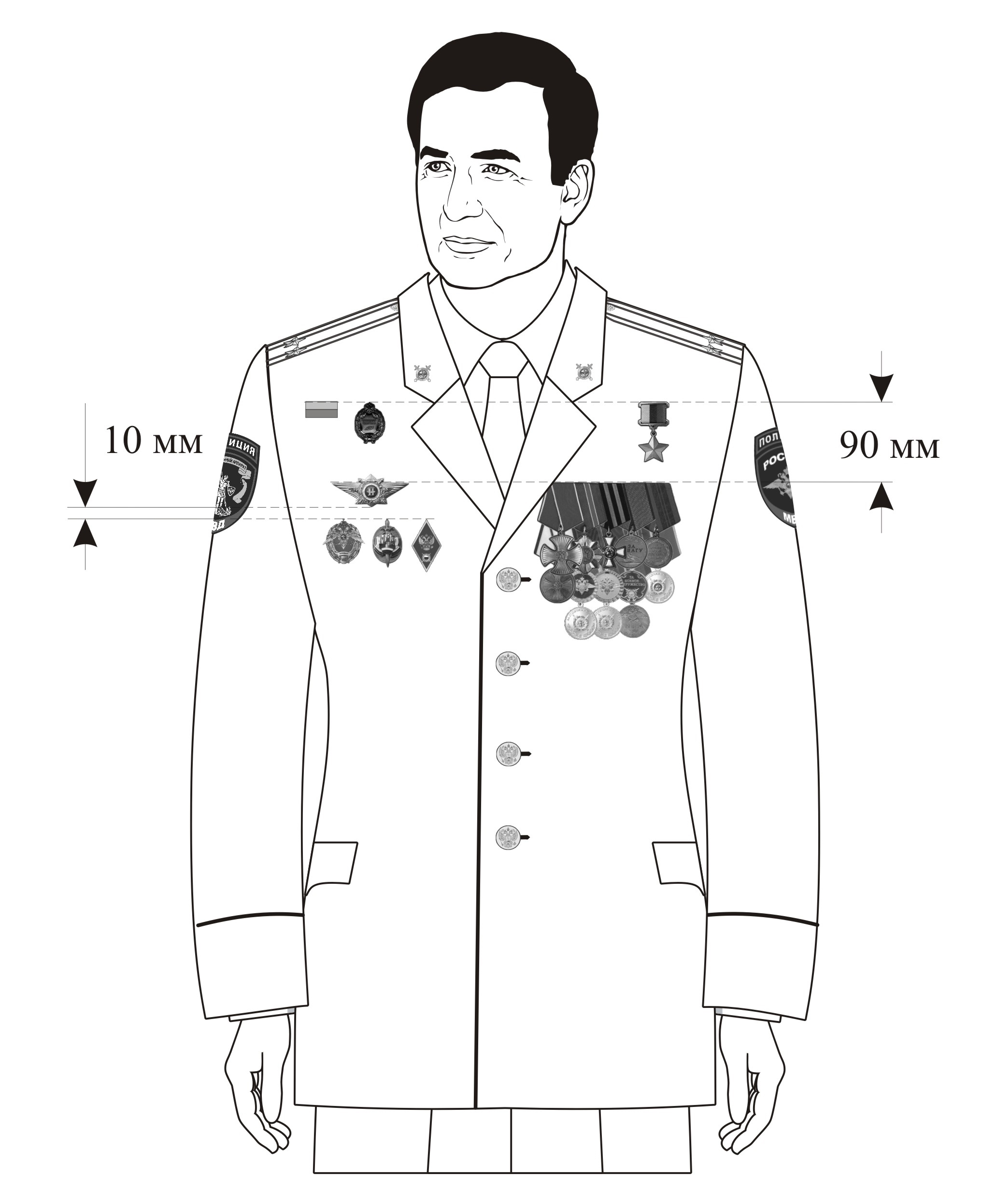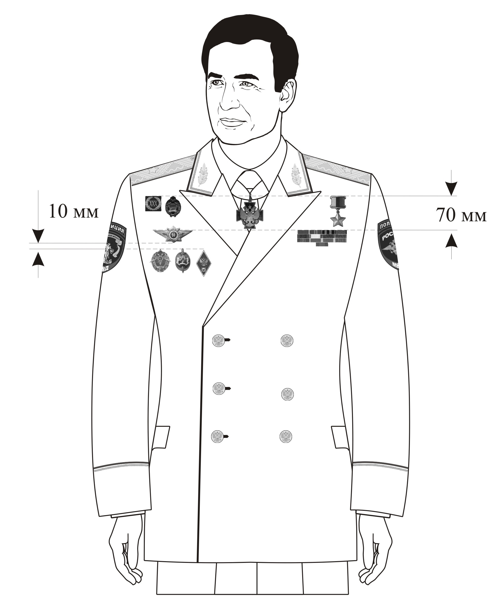 Рекомендации по размещению знаков различия, государственных и ведомственных наград, планок с лентами орденов и медалей на предметах форменной одежды сотрудников органов внутренних дел Российской Федерации