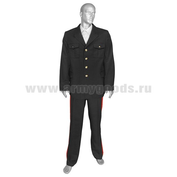 Костюм п/ш кадета черный (китель+брюки с красн ламп) р-ры 34 - 52