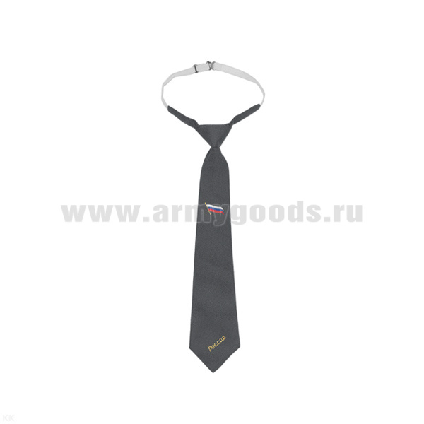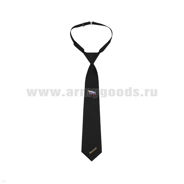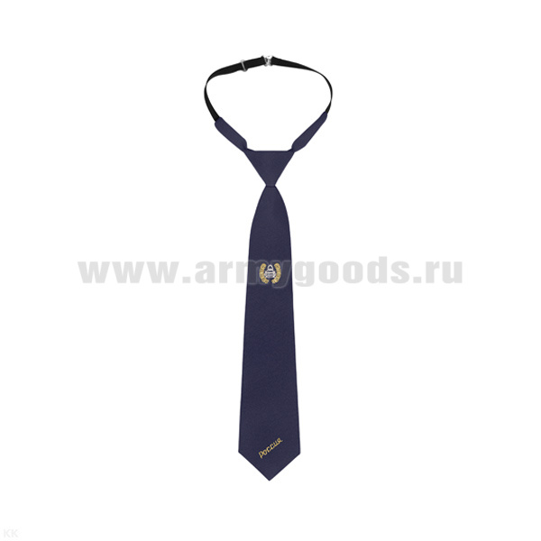 Галстук-регат с вышивкой черн. с малым орлом РФ и надп. "Россия" п/э