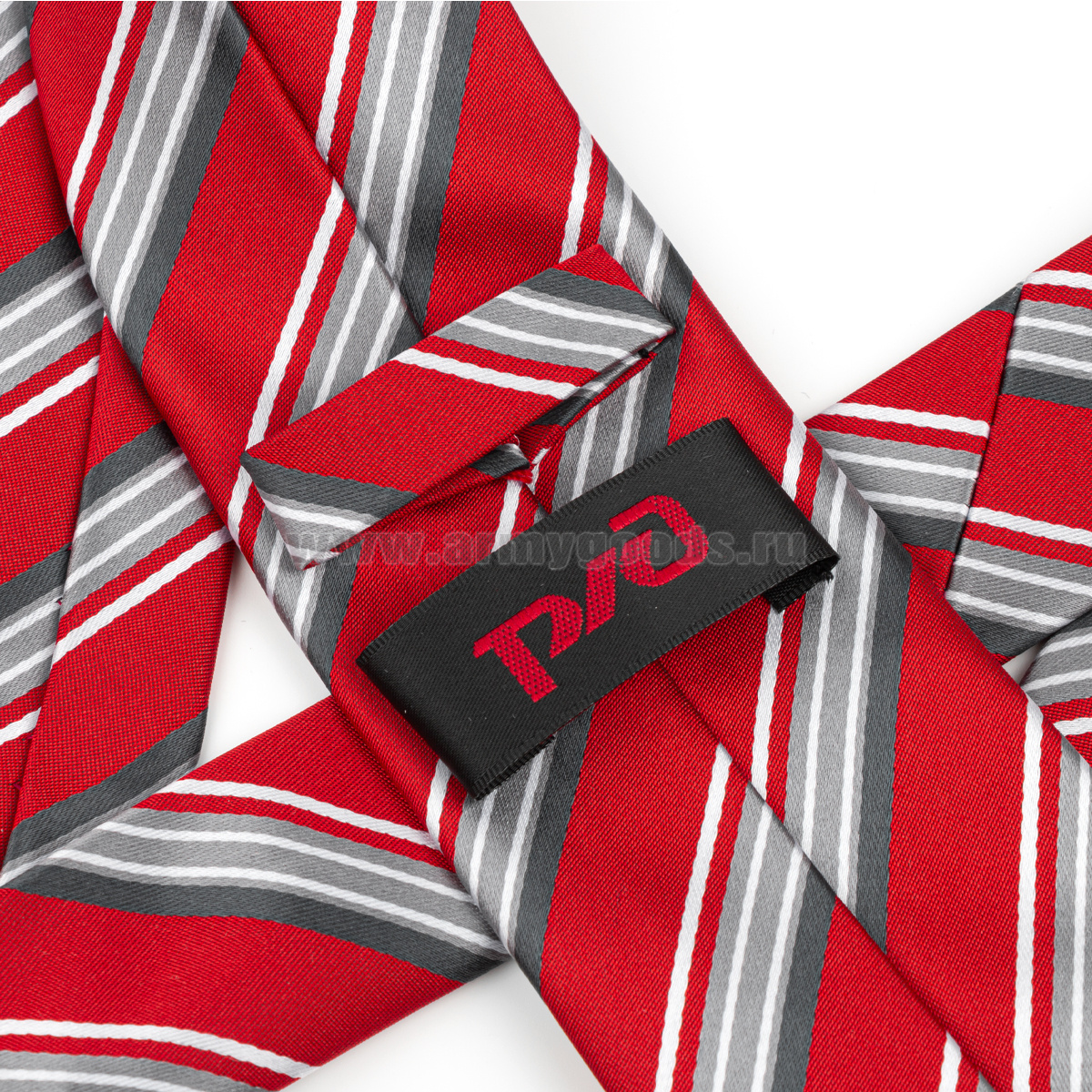 Галстук-самовяз форменный РЖД красный с белыми и серыми полосками (для работников локомотивных бригад)