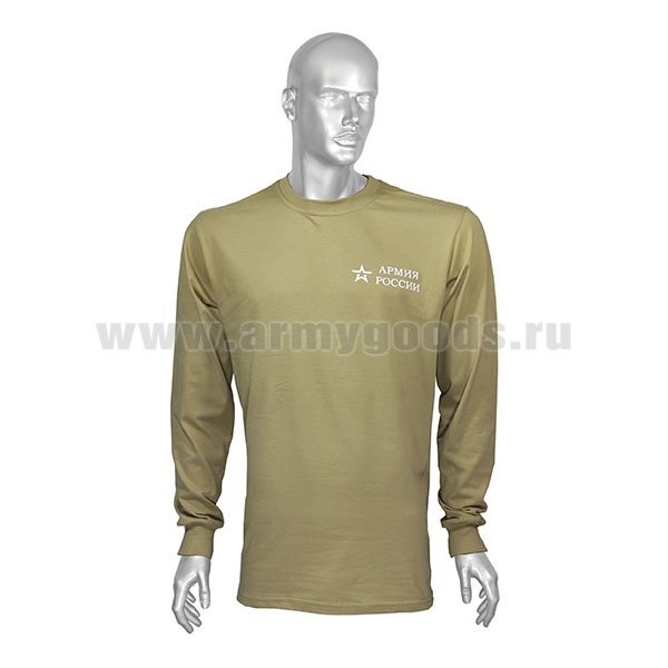 Фуфайка лет. х/б кулирка песочная нов/обр с надп. белой краской Армия России (со звездой) к костюму офисному уставная