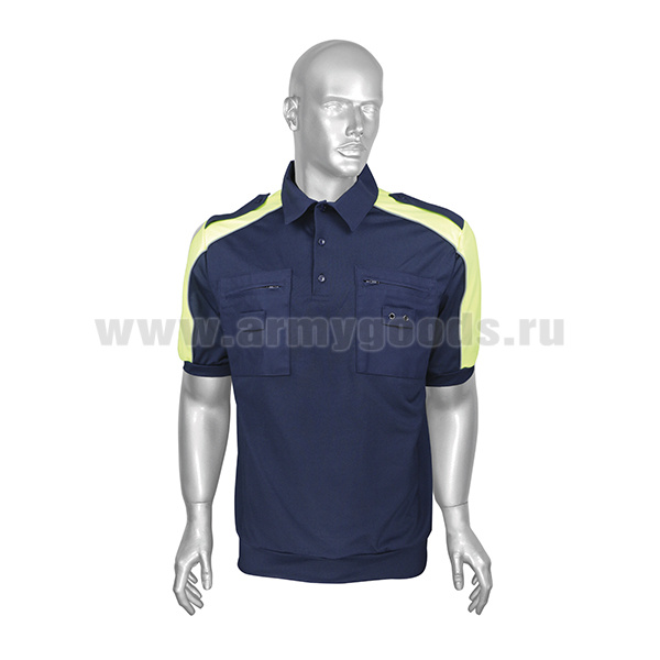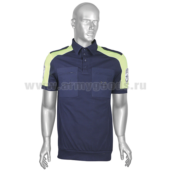 Рубашка поло ДПС М-535 тип А (95% хлопок, 5% лайкра) кор. рук. со световозвращающими шевронами (желтые вставки)