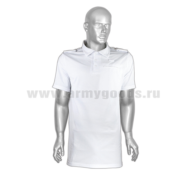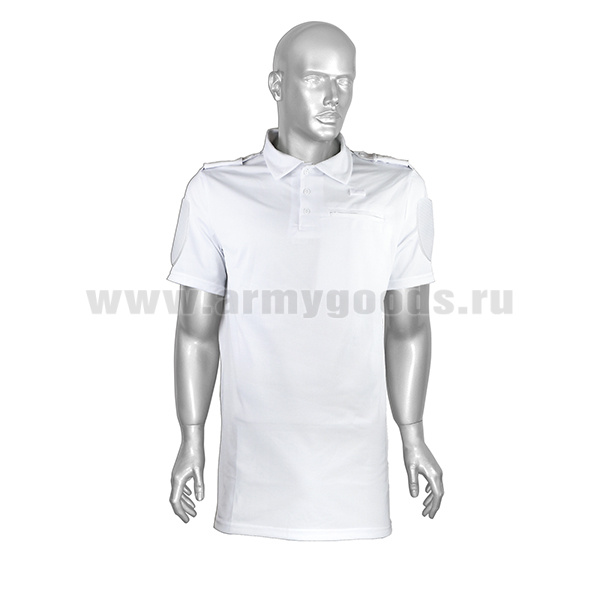 Рубашка поло Полиция (короткий рукав) нов/обр ТУ 2018 (без триколора и надписей) белая АКЦИЯ (дополнительно с двумя липучками (128х80 мм) на рукавах)