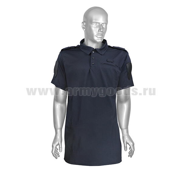 Рубашка поло Полиция (короткий рукав) нов/обр ТУ 2018 (без триколора и надписей) иссиня-черн АКЦИЯ (дополнительно с двумя липучками (128х80 мм) на рукавах) р-ры с 40 по 60