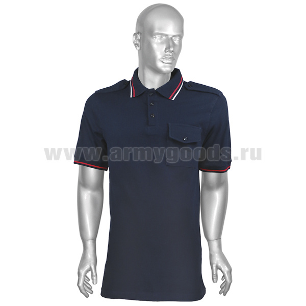 Рубашка поло Полиция (короткий рукав) нов/обр ТУ 2018 (без триколора и надписей) иссиня-черн АКЦИЯ (дополнительно с двумя липучками (128х80 мм) на рукавах) р-ры с 62