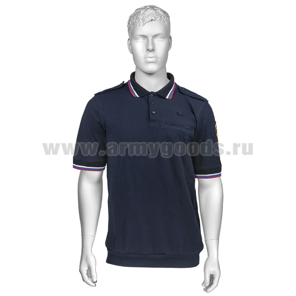 Рубашка поло Полиция темно-синяя (кор рук) (триколор на вороте и рукавах) х/б (низ на резинке) р-ры с 62