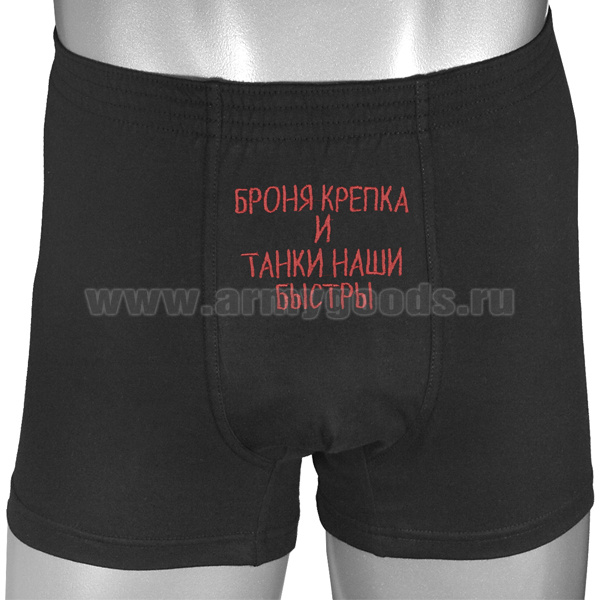 Трусы-шорты черные вышитые Броня крепка и танки наши быстры
