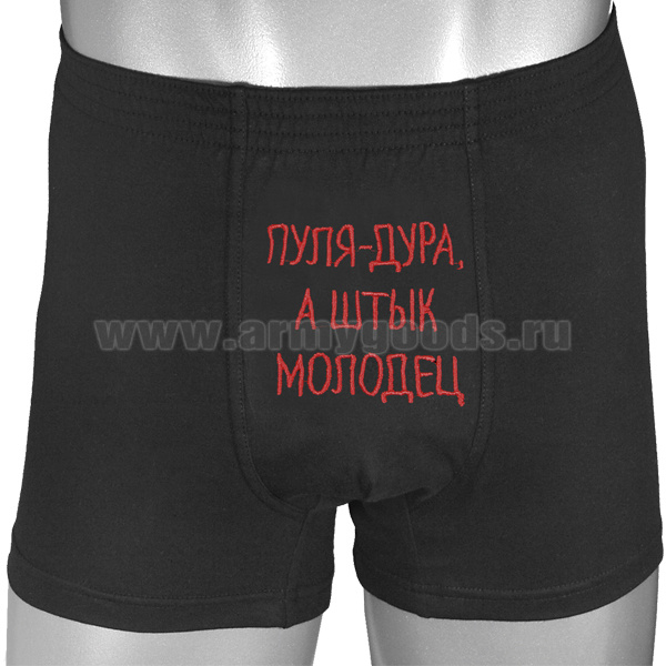 Трусы-шорты черные вышитые Пуля-дура, а штык молодец