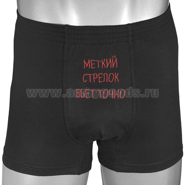 Трусы-шорты черные вышитые Меткий стрелок бьёт точно