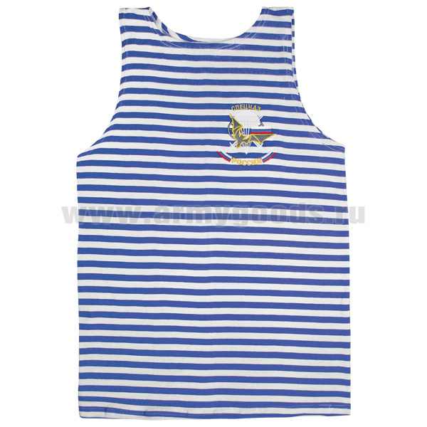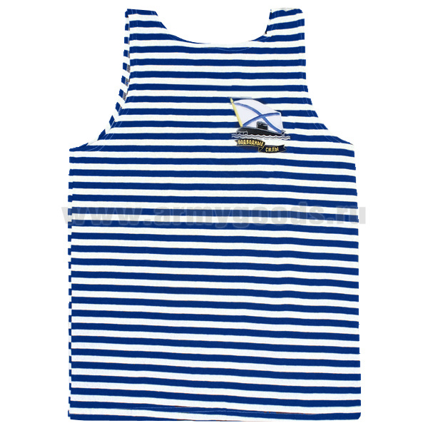 Майка-тельняшка кулирка синяя вышитая Подводные силы
