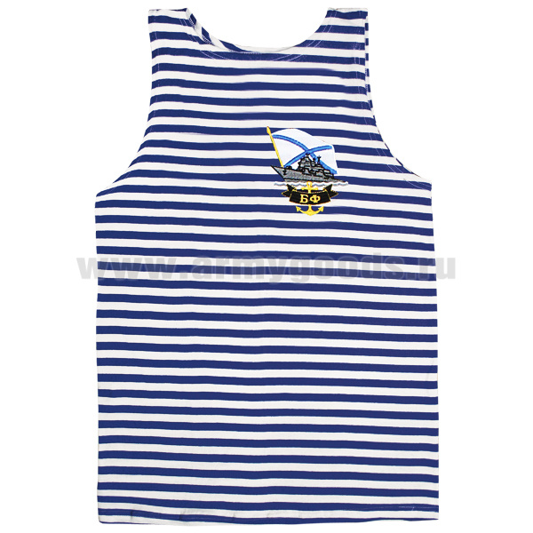 Майка-тельняшка кулирка синяя вышитая БФ (корабль)