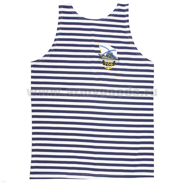 Майка-тельняшка кулирка синяя вышитая ТОФ (корабль)