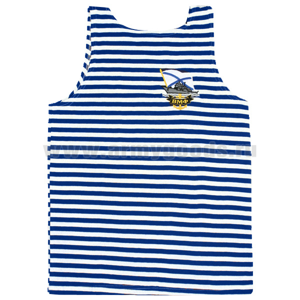 Майка-тельняшка кулирка синяя вышитая ВМФ (корабль)