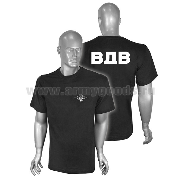 Футболка с надп. белой краской черн. ВДВ (малая эмблема на груди, аббревиатура на спине)