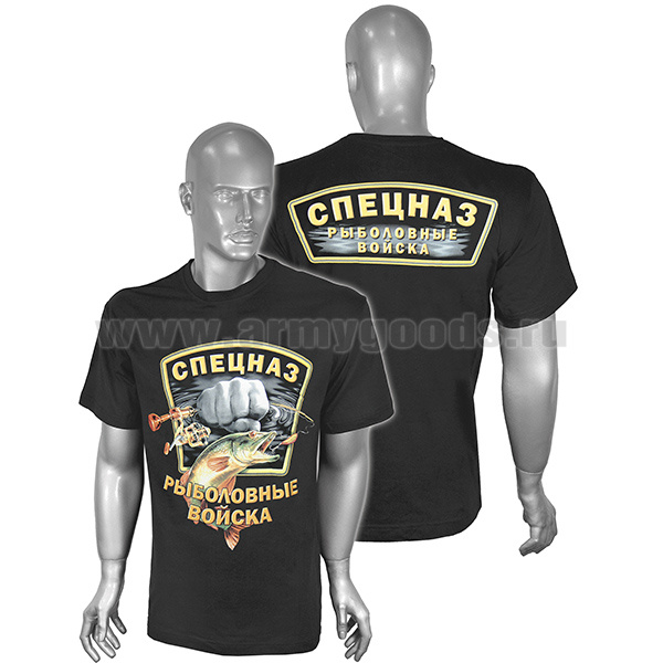 -Футболка с рис краской Спецназ Рыболовные войска (черная)
