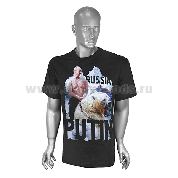 Футболка с рис краской Russia Putin (Путин на медведе) черная (р-ры с 62)