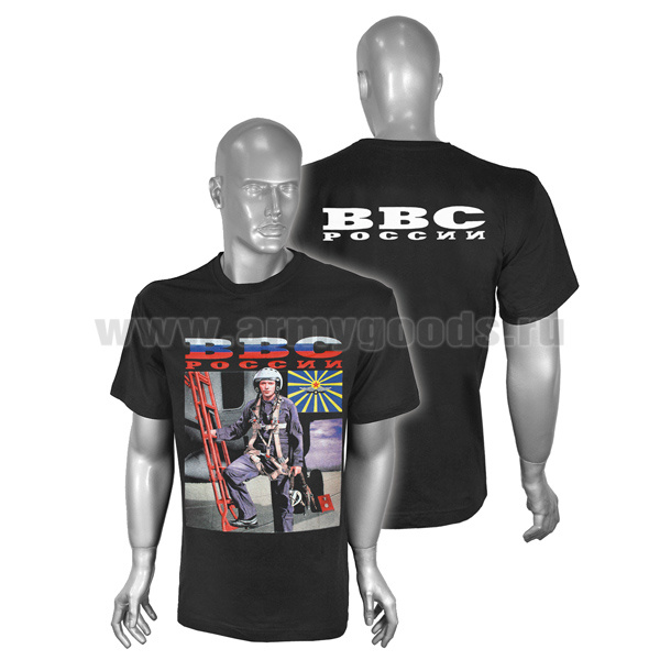Футболка с рисунком краской ВВС России (пилот) черная