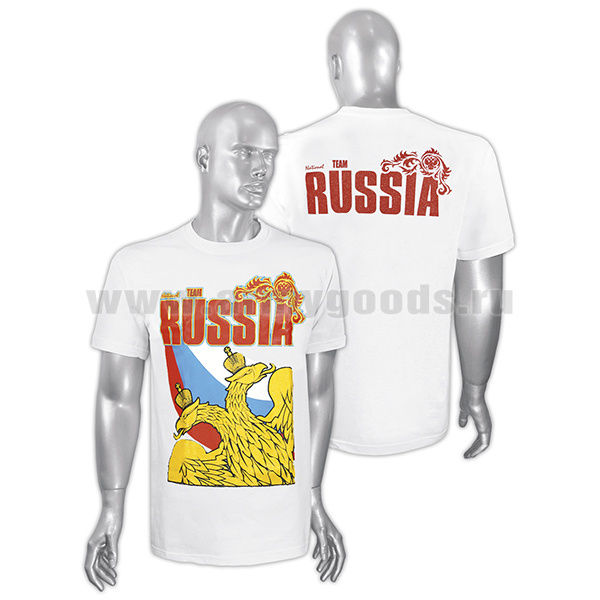 Футболка с рисунком краской  National Team Russia (двуглавый орел ) белая