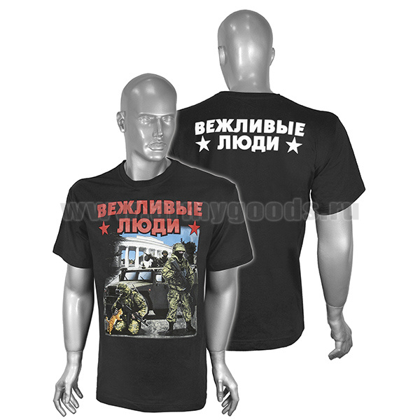 Футболка с рис краской Вежливые люди (Спецназовцы) на спине Вежливые люди черная