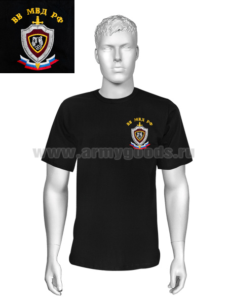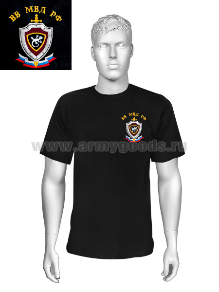 Футболка с вышивкой на груди ВВ МВД РФ (грифон) черн.