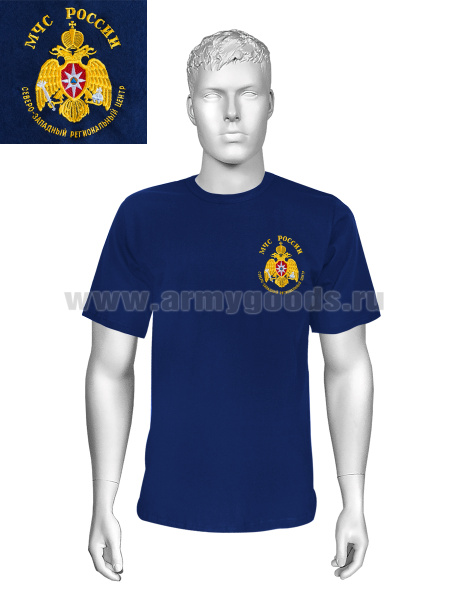 Футболка с вышивкой на груди МЧС России северо-западный региональный центр, синяя