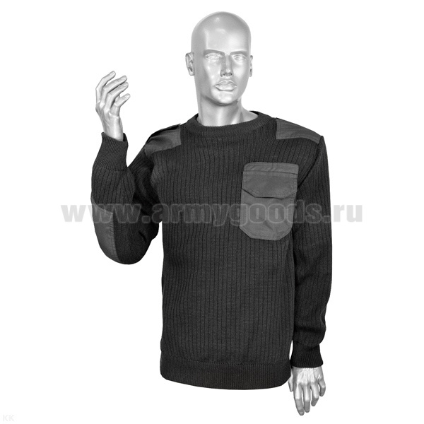 Свитер ПАН 100 % с накладками черный (вырез под горло круглый)
