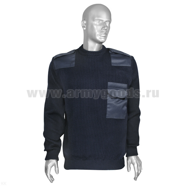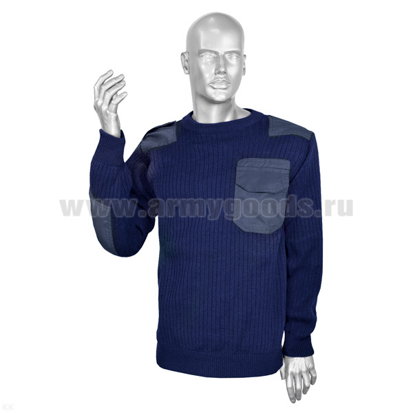 Свитер ПАН 100 % с накладками синий (вырез под горло круглый)