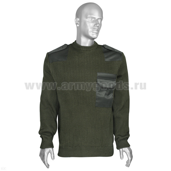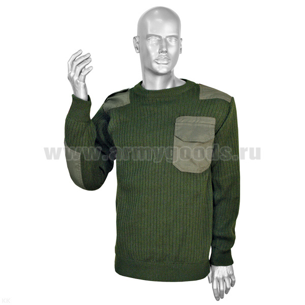Свитер ПАН 100 % с накладками оливковый (вырез под горло круглый)