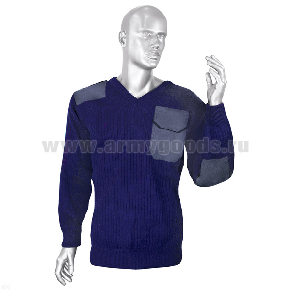 Свитер ПАН 100 % с накладками синий (вырез под горло V-образный)