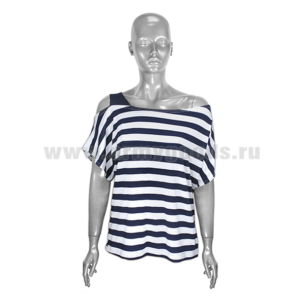 Туника женская с вырезами на плечах (белая в синюю полоску)