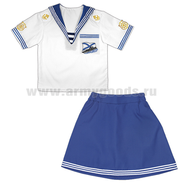 Костюм морской детский для девочки (фланка кор. рукав + юбка)
