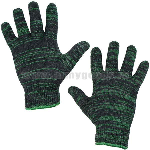 Перчатки рабочие х/б двойные без ПВХ (черно-зеленые) 5 нитей, 10 класс