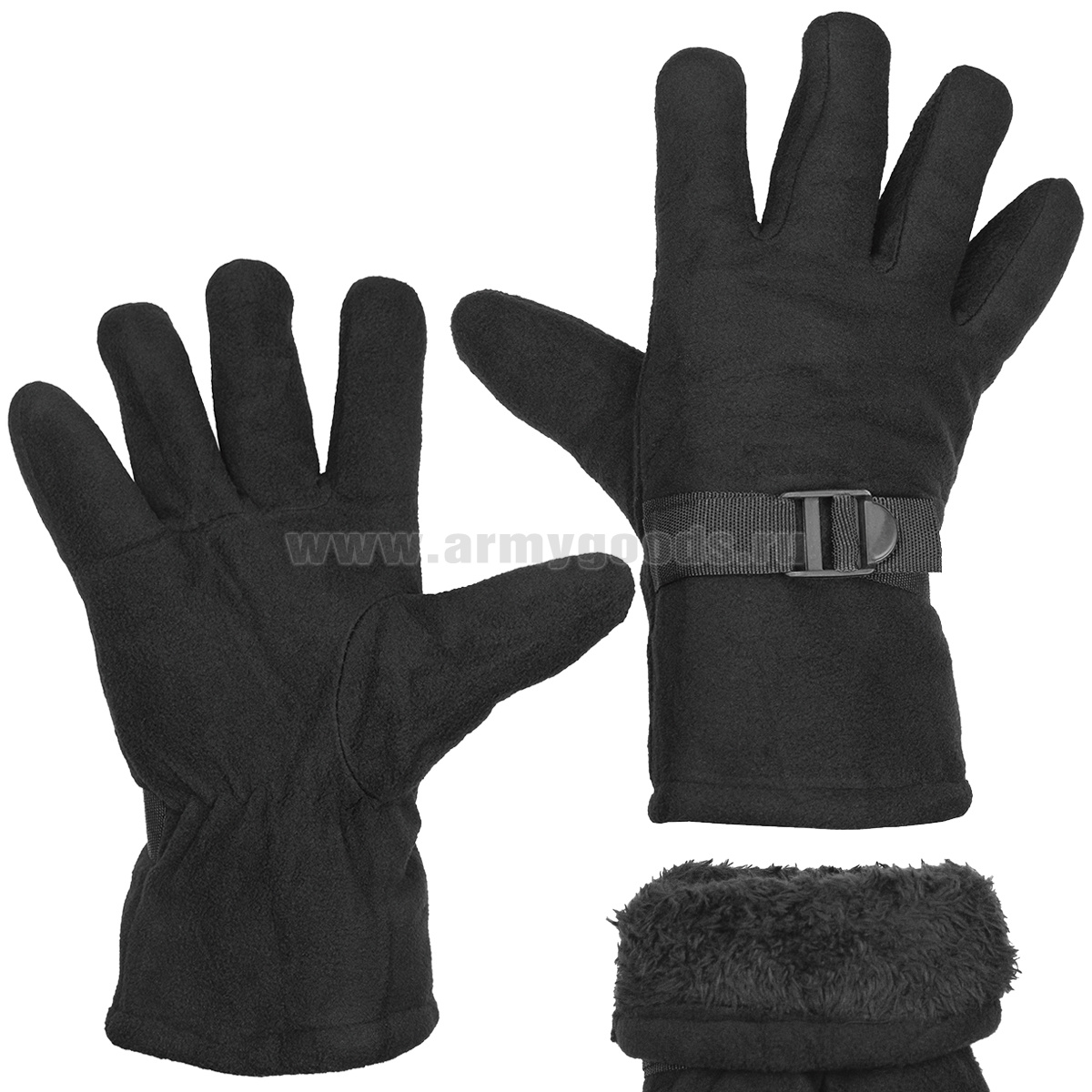 Перчатки зимние флисовые с иск. мехом черные (с утяжкой)
