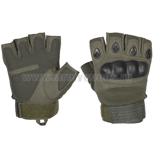 Перчатки с обр/пал с защитными накладками оливковые