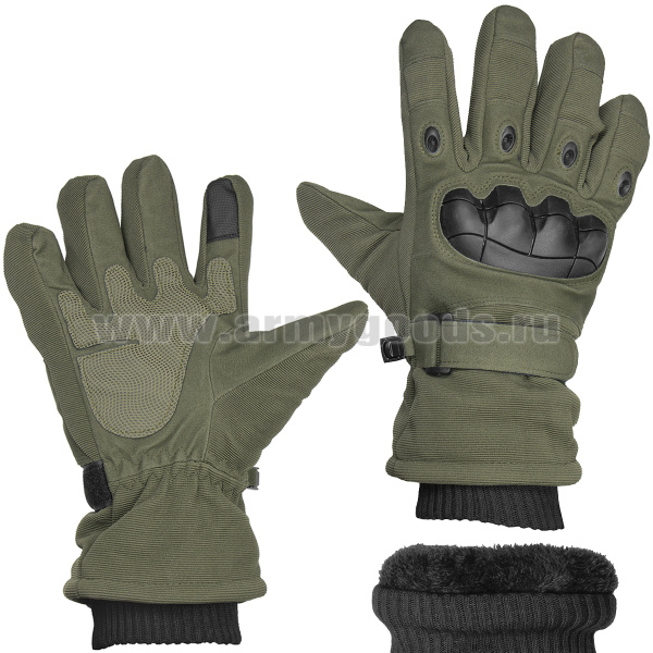 Перчатки тканевые с защитными накладками (утепленные иск. мехом) оливковые